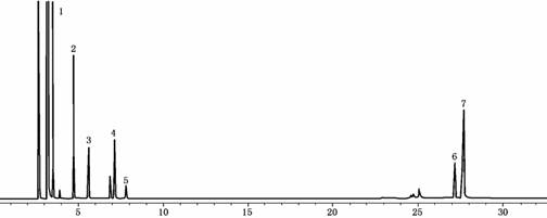 2. 苯 2.甲苯 3.正辛烷4.间二甲苯 5.邻二甲苯6.甲苯二异氰酸酯(I)7. 甲苯二异氰酸酯(II)