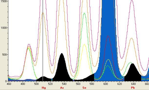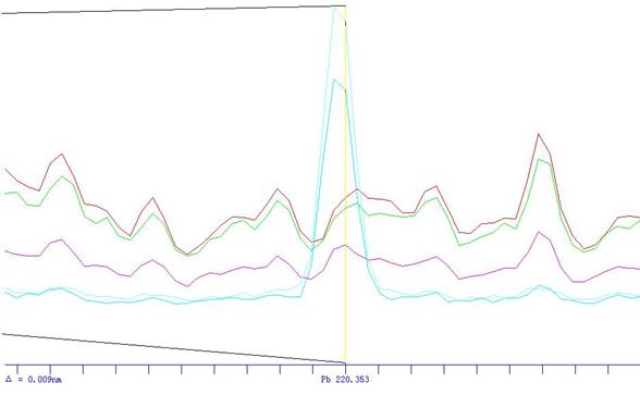Pb的图谱(虚谱突出表现的差别硫含量的谱峰)