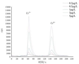 用1 mg/L Cr3+和Cr6+夹杂规范溶液顺次浓缩配制浓度别离为0.2 µg/L、0.5 µg/L、1.0 µg/L、3 µg/L、5
