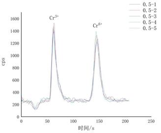 屡次进样测定浓度为0.5 µg/L Cr3+和Cr6+夹(jia)杂规范(fan)溶液,停止反复性(xing)尝试,见图(tu)3: