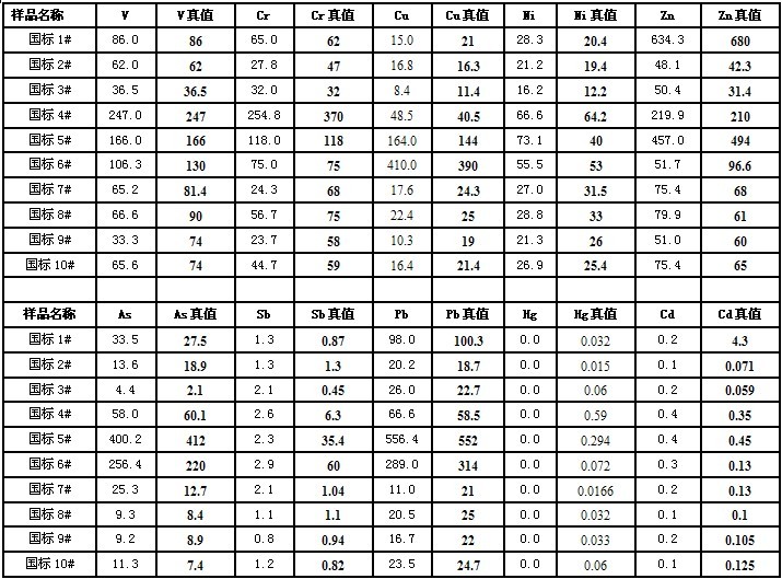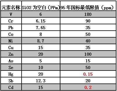 别的其装备对12大重金属元素的检出限有: